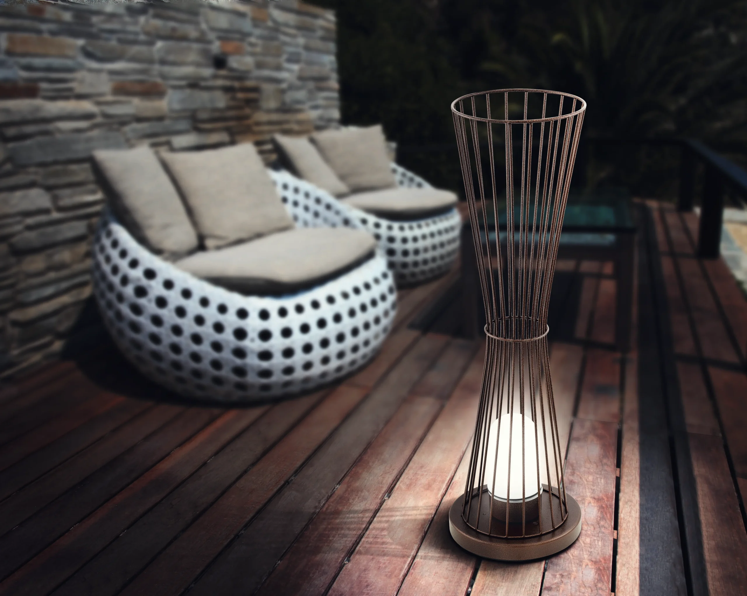 The EGLO 94332 TERRICO is an outdoor Garden Living floor light combining a brown zinc‑plated steel body with a white satin‑glass diffuser for soft, ambient illumination in patios and lawns. Rated IP54 and Class I for 220–240 V operation, it is supplied with an outdoor cable and plug for easy placement and seasonal flexibility. Supporting an E27 lamp up to 60 W (not included), the 750 mm height and Ø230 mm form deliver a substantial yet elegant presence.