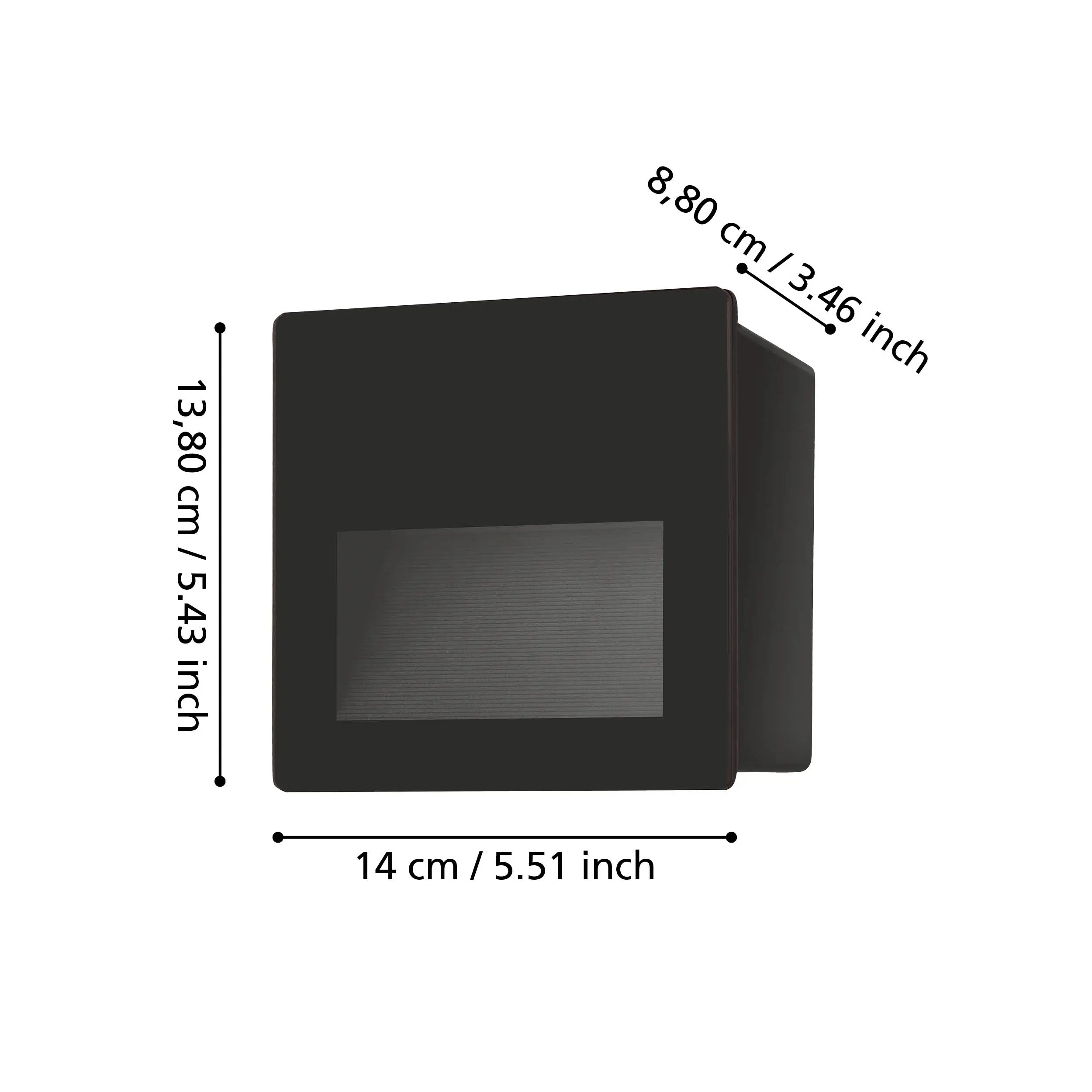 Weatherproof & Durable Outdoor Lighting – Designed for outdoor use with IP65 protection, this square recessed wall light features a robust aluminium and plastic housing with a stylish black glass front—perfect for lighting stairwells, entrances, patios, or exterior walls.