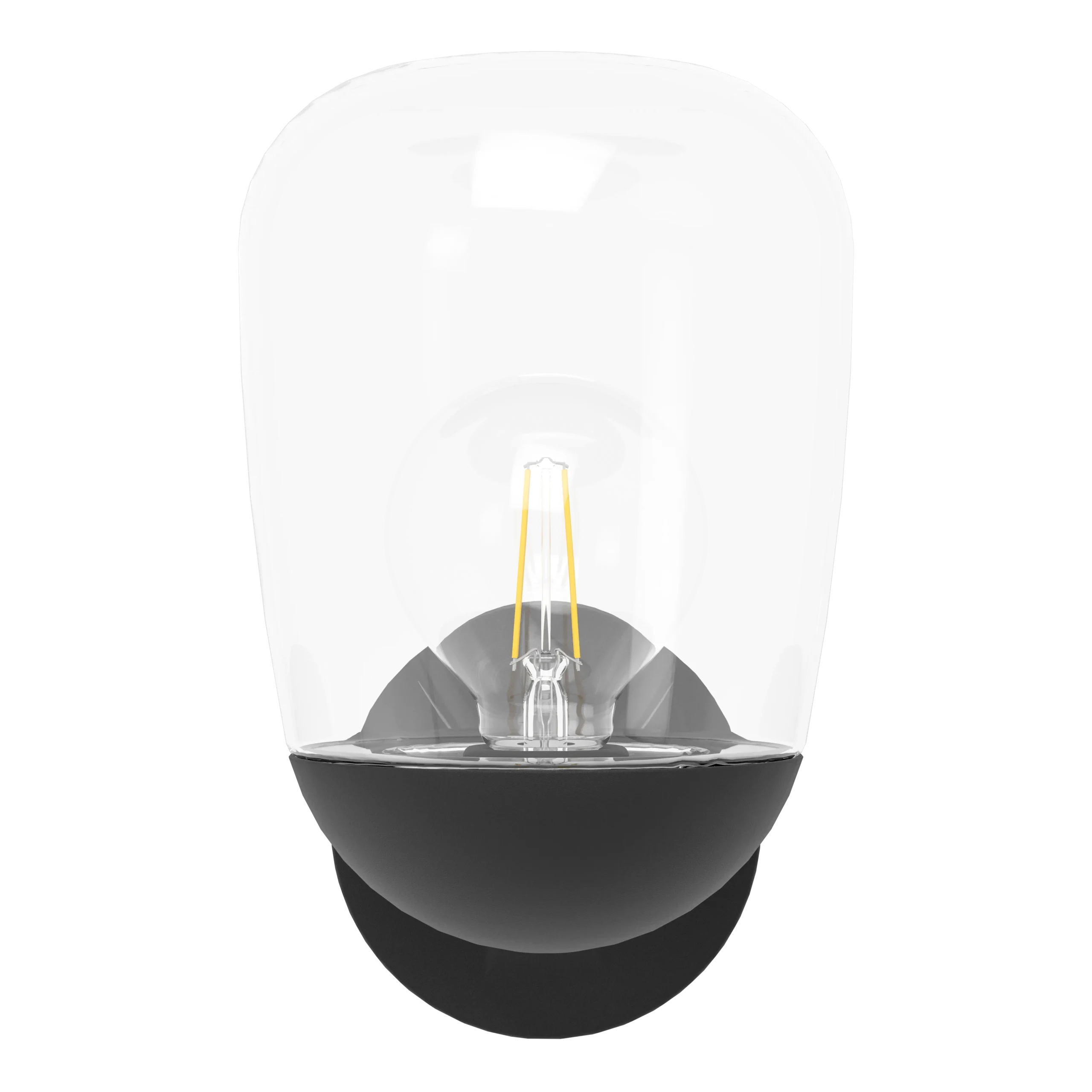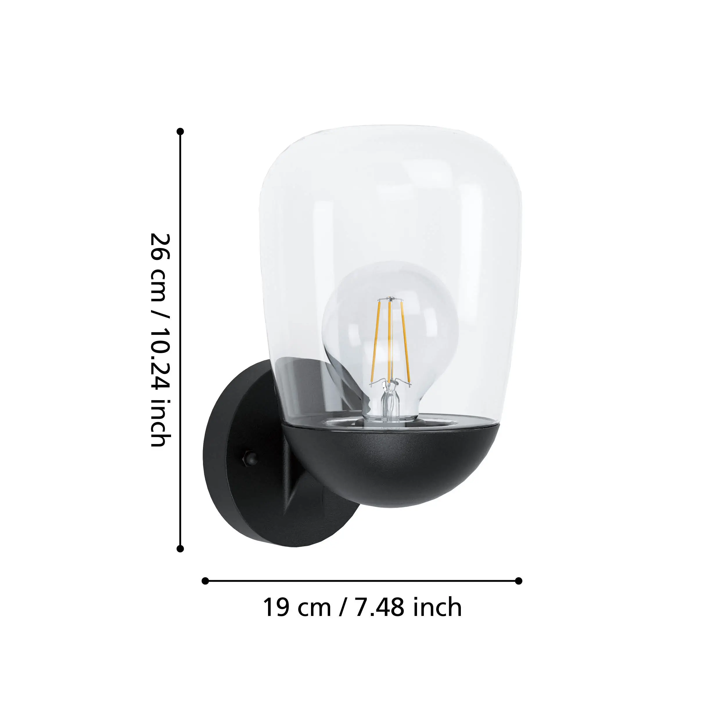 Elegant outdoor design – Black cast‑aluminium mount supporting a 155mm clear glass globe, creating a refined, contemporary look for patios, entryways, or terraces .