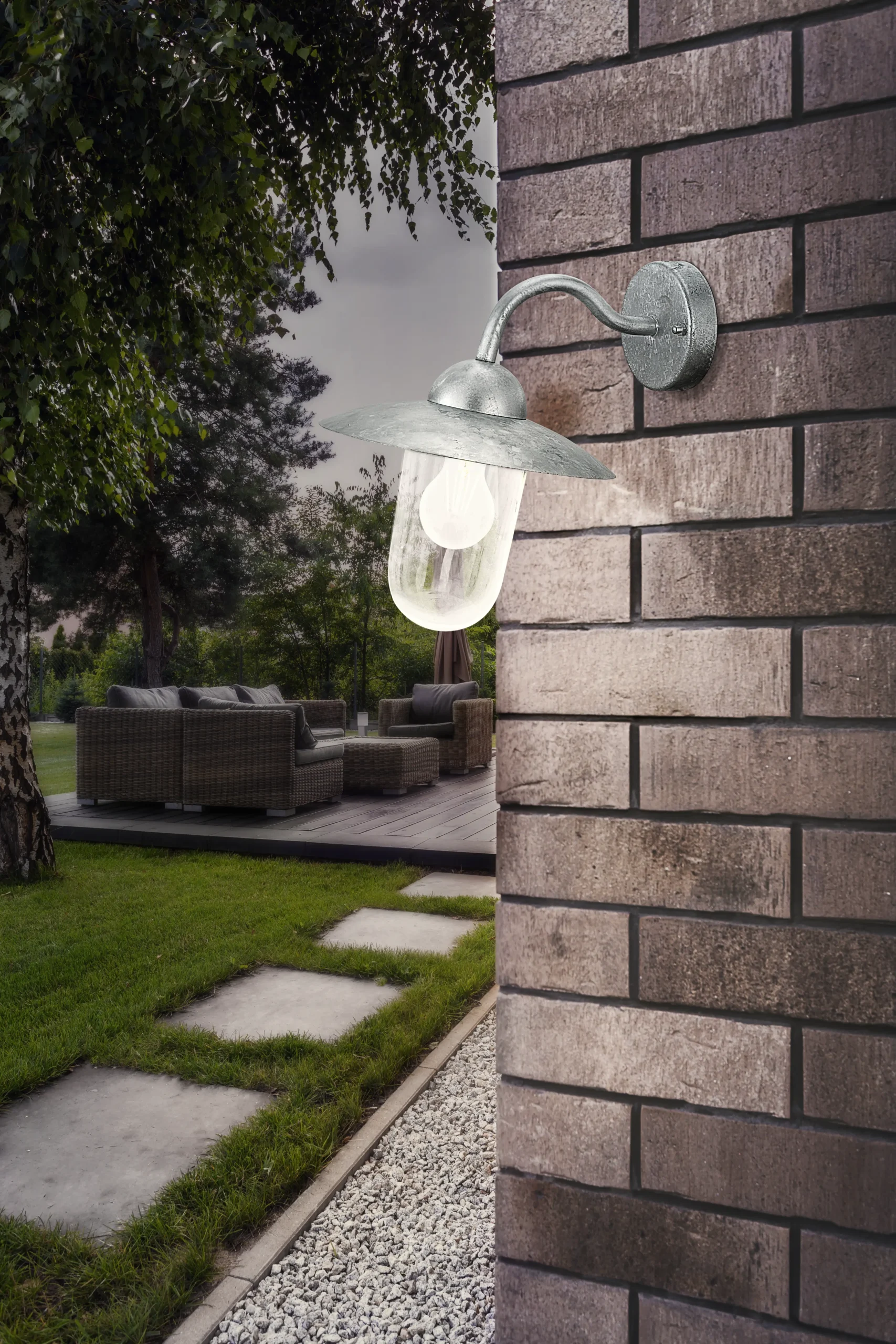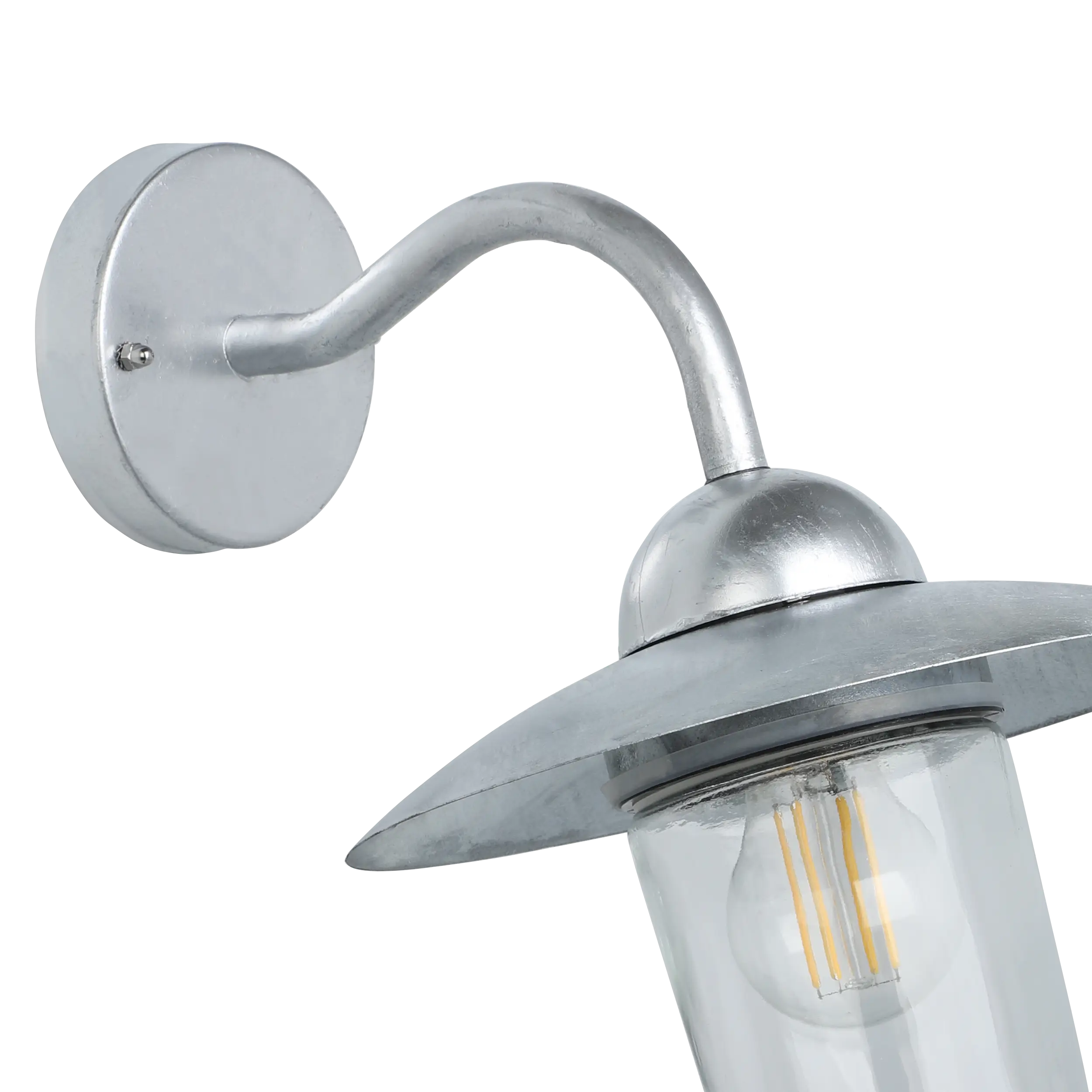 Classic Lantern-Style Design: This elegant lantern-inspired wall light features a zinc-plated steel body with a clear glass dome, offering timeless charm and unobstructed light—perfect for porches, patios, balconies, or entrance areas.