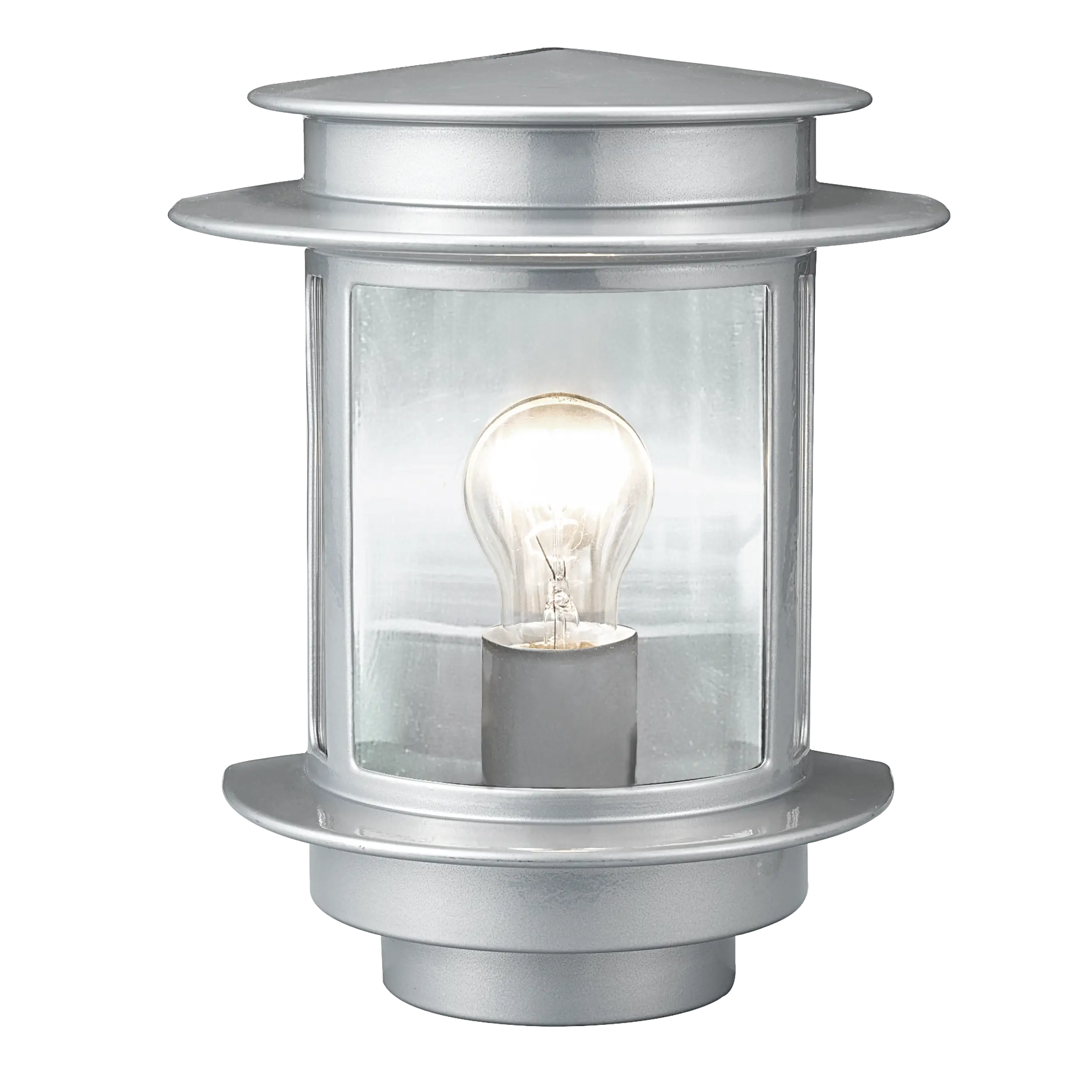 Sleek outdoor Lamping – features a modern silver cast aluminium housing, ideal for illuminating patios, balconies, or garden walls.