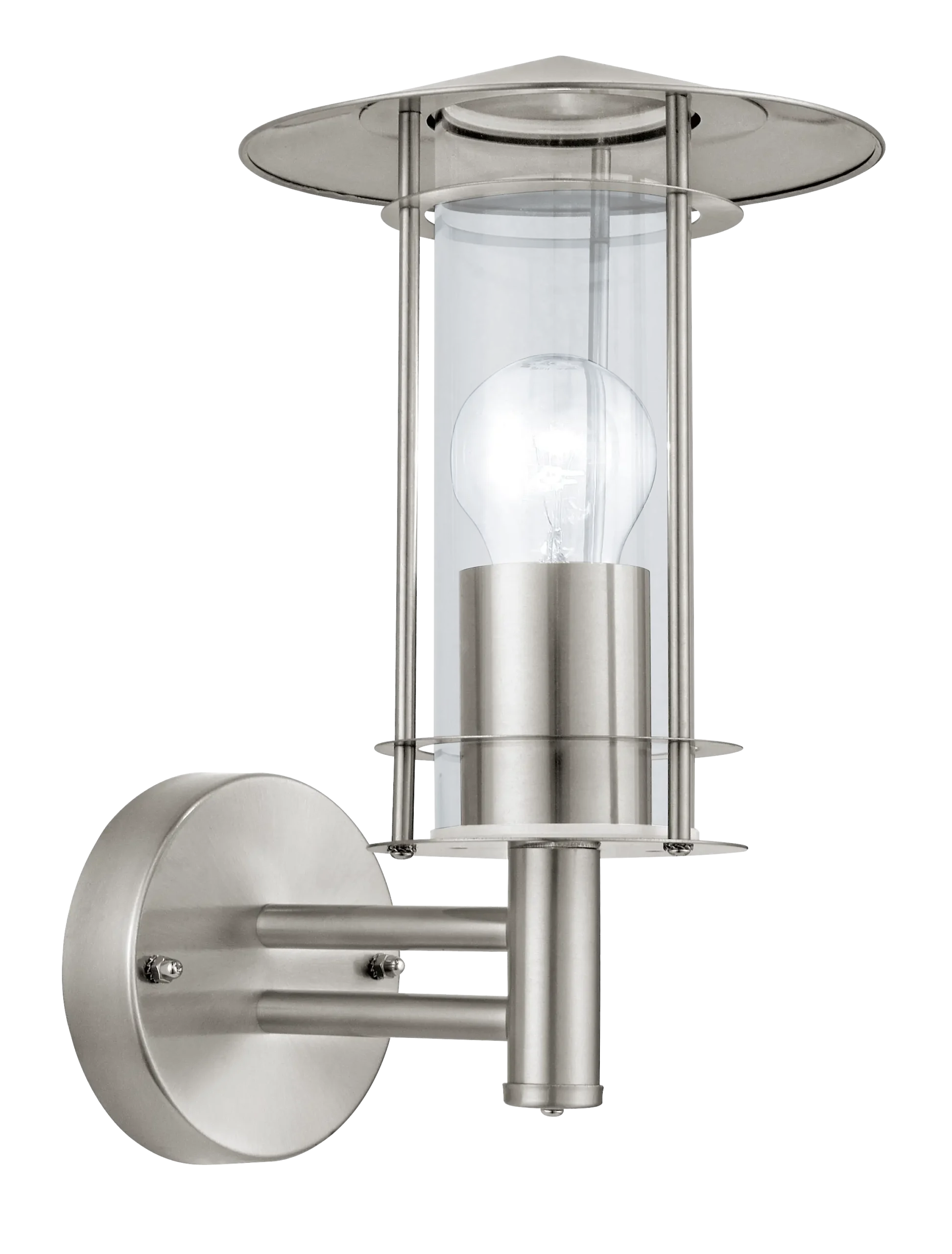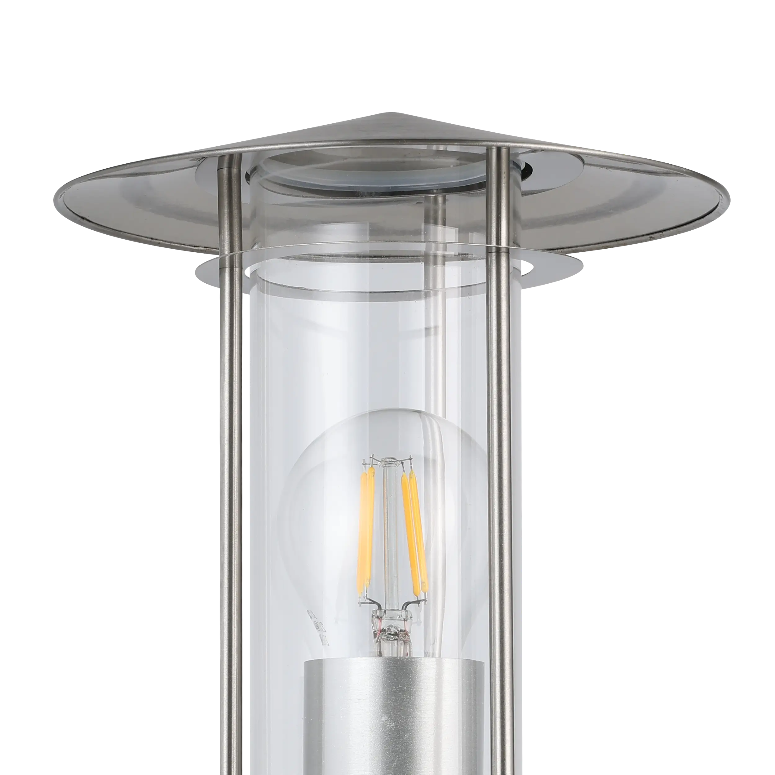 Modern stainless steel design – Sleek lantern-style body in durable stainless steel with clear glass cylinder, perfect for contemporary outdoor spaces.