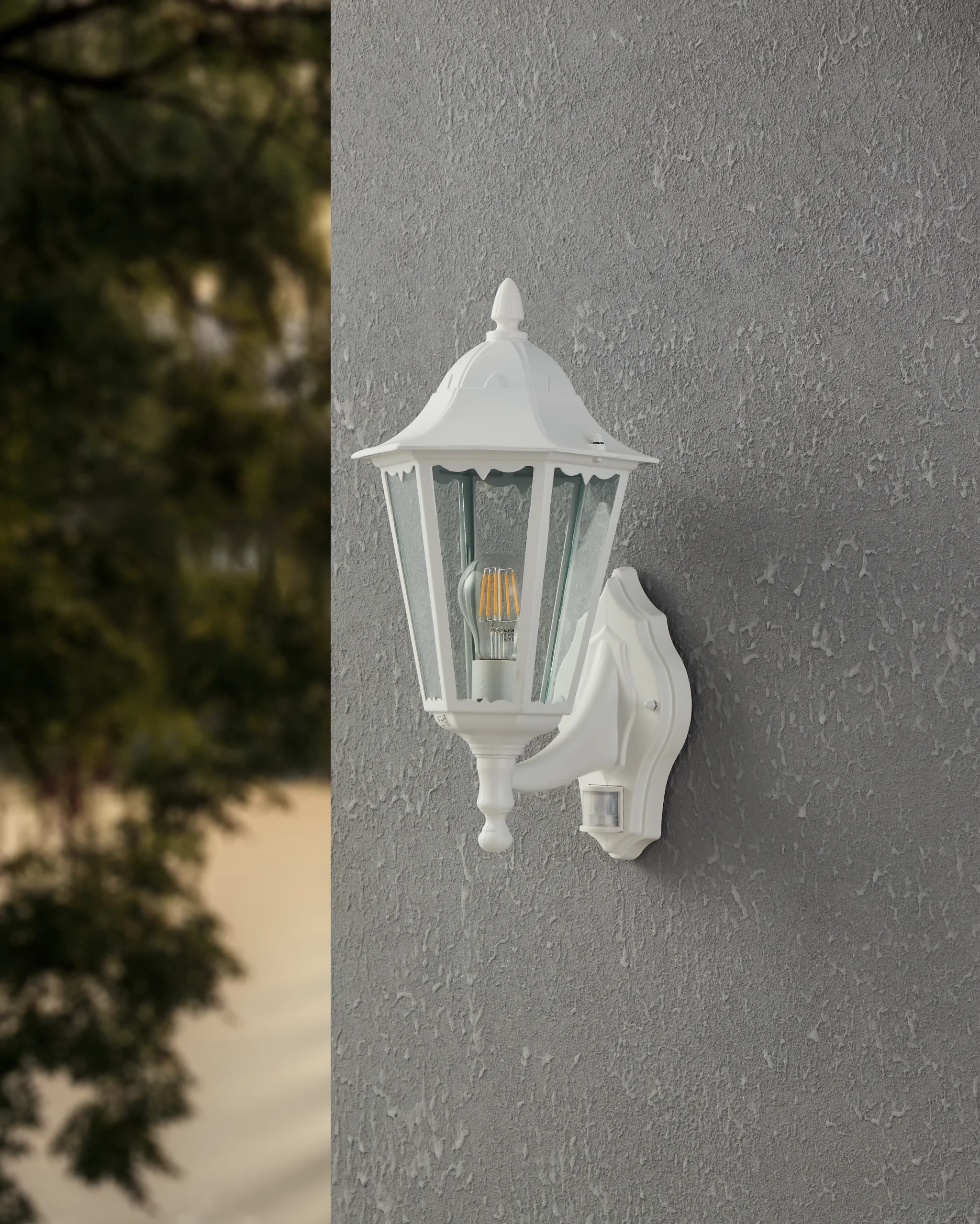 Classic Lantern Style: Cast-aluminium body finished in crisp white with charming decorative details, paired with clear glass panels for a timeless outdoor aesthetic.
