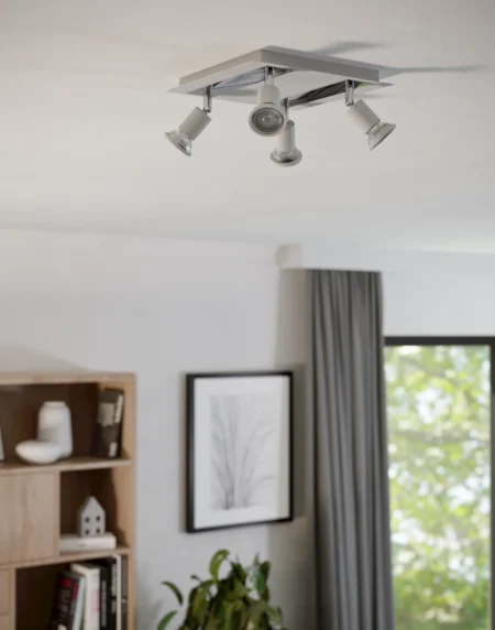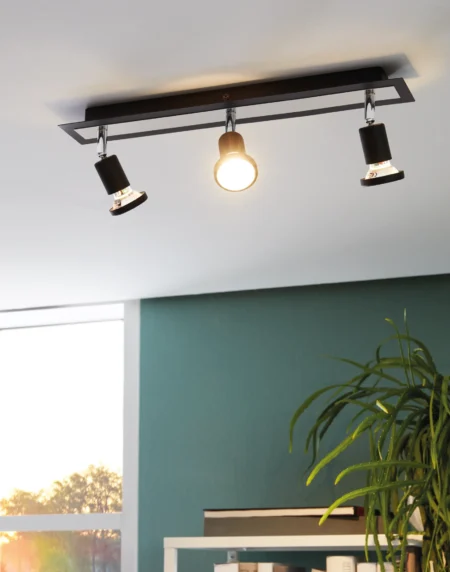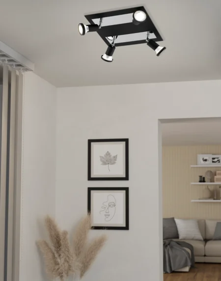 Sarona 900401 LED Pendant Light, 1‑Light GU10, Black & Gold Steel, Adjustable Textile Cable – Warm White 3000K, Modern Ceiling Lighting for Living Room & Dining Room