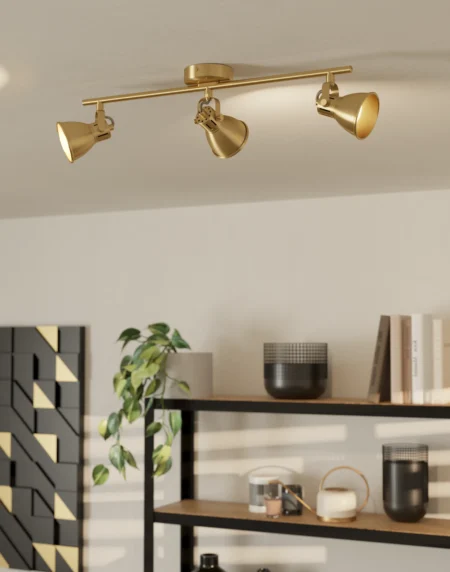 SELVINO 98697 Pendant Lamp – Satin Nickel Steel Frame with Gold Vaporized Glass Shades – 3x E27 Sockets – L71 cm x W10 cm x H110 cm – IP20 – 2-Year Warranty