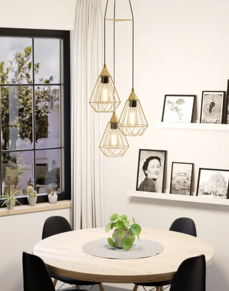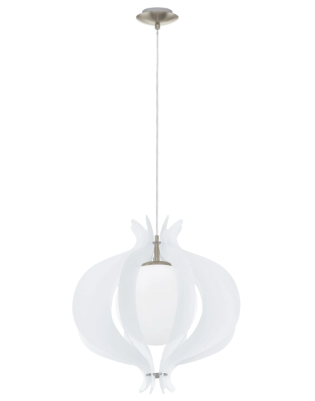 The TALLEGO pendant light features a sleek and modern design with a satin nickel steel enclosure combined with steel and glass shades in green and white, providing a stylish accent for indoor spaces. It measures 1100 mm in height with a diameter of 420 mm and weighs approximately 2.65 kg,